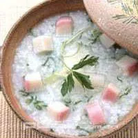 腊八饭 四川 • 德阳 • 什邡 腊八饭又口叫“佛粥”,惜日在古代是一个重要节日,固定在农历十二月初八,因为这天是释迦牟尼成道日,所有佛教寺院都要取谷米和果实煮粥供佛,一流传到民间就改称为“腊八粥”或叫“腊八饭”,什邡民间都有煮腊八饭的习俗,一直流传至今。 民间腊八饭是用饭米、糯米作原料,把白菜、红萝卜、白萝卜、豆腐干、花生米、熟腊肉都切成碎块,制作时将大米、糯米淘净放入锅内掺水,在旺火上把大米煮胀时,即下切好的蔬菜,改小火炖煮,煮到不干不稀时,放入适当的盐、香油、花椒等调昧品,即成腊八粥。