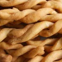 猪油麻花,面食,特点:色泽茶黄,形如麻绞,酥脆香甜,散口化渣。烹制法:炸。此品是四川民间小吃,老幼皆宜,又名“麻花”,因形如麻绞而得名。