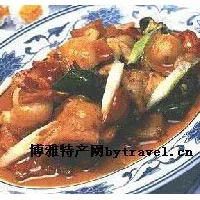回锅肉源于民间祭祀,系将敬鬼神、祖宗的供品在敬献之后拿来回锅食用,因而也称“会锅肉”,川西地区还称之为“熬锅肉”。四川家家户户都能制作,又被四川菜馆作为传统名肴。久居异地的四川人,每当回到四川,山珍海味可免,而回锅肉不能不吃。 特点:用猪腿肉,经先煮后炒,或先蒸后炒而成。成菜色泽红绿相衬,肉片厚薄均匀,软硬适度,味浓鲜香,微辣带甜。 工艺:取用带皮的猪坐臀肉,入锅中用水煮至刚断生取出,稍晾凉后,即按横筋切成6.6厘米长、5厘米宽、0.3厘米厚的厚薄大小一致的薄片。炒肉时应先炙锅,再下菜油、化猪油合成的混合油,烧至五成热,下肉片炒至卷缩成灯盏窝状,烹绍酒,下盐翻炒,再下郫县豆瓣炒上色,下甜酱、白糖炒匀,最后下蒜苗节炒至断生即起锅。成都的回锅肉炒时要放豆豉,重庆的回锅肉则不放,这是先煮后炒的回锅肉制法。先蒸后炒的“旱蒸回锅肉”,由于不煮而先蒸,保持原汁,成菜后较先蒸后炒的香味更浓郁,也更受人们欢迎。