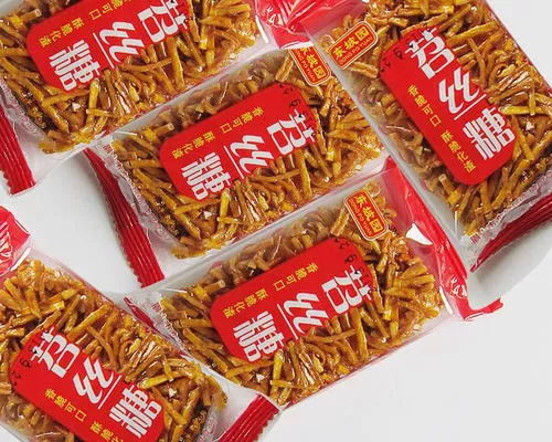 苕丝糖 贵州 • 遵义 • 习水 苕丝糖 土城的苕丝糖已有百年历史,驰名省内外。苕丝糖以当地天然无污染的糯米、红薯、蔗糖为原料,采用传统生产工艺,经过蒸、煮、打、捶、压等30多道工序制作完成,特点是香酥可口,入口即化,久吃不腻,是黔北一种名特产。近年来随着旅游业的发展,土城游客日益增多,当地苕丝糖生意红火。如今,在古镇制作苕丝糖的家庭作坊已发展到数十家,具有广泛的市场前景。