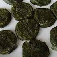 原 料:糯米粉250克,粘米粉60克,清明菜75克。 调 料:引子馅100克。 制作方法:烙。先将清明菜洗净、切细。将糯米粉、粘米粉与清明菜拌好加100克开水和匀,再加适量的冷水揉成“三生面“米粉面团,搓条下剂成20克一个的剂子,逐个压扁包入引子馅心,封口向下,压成直径7厘米、厚度1厘米的圆饼生坯。然后将平锅烧热刷油,放入饼坯用中火慢慢烙至两面微黄,熟后铲出装盘即成。 风味特色:皮糍糯,馅甜香,有浓郁的清明菜香味。为贵州农村时令小吃。 技术要领:面团加水要适度,不能过软或过硬,封口要严,防止漏馅。( 遵义)