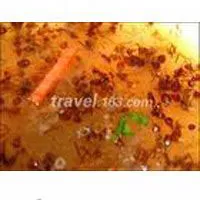 凉拌酸蚂蚁 云南 • 普洱 • 思茅 在孟连傣族村寨中,每到暑夏,可以品尝到一道蛋白质极为丰富的佳肴,这就是酸辣爽口,和胃生津,驱暑气、祛病强身的凉拌酸蚂蚁蛋。酸蚂蚁是热带丛林中的一种细长的黄蚂蚁。成虫具有较浓的酸味,它常在竹丛、树垭 起比面瓜大几倍的圆巢。春末夏初,蚁巢中大部分是黄豆般大小的蚁卵。洁白如珍珠。其做法是,将蚁巢取下,除去杂质和成蚁,煮熟后加上食盐、辣椒。碎葱头、生蒜泥拌匀后即可食用。酸蚂蚁蛋是世间最小最香的蛋,具有丰富的蛋白质,孟连傣家人常用来招待亲戚朋友,品尝后令人回味。( 思茅)