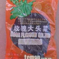玫瑰大头菜创始于明末清初,已有300多年的生产历史。过去,云南昆明玫瑰大头菜的店铺有数家,其中“永香斋”酱园号称“芥酱名家”。该店酱腌的玫瑰大头菜风味别具,名声最大。 昆明玫瑰大头菜是以当地郊区(主要是关上、杨方凹一带)出产的上等鲜芥菜头为主 料,经过削皮破块,用精盐和磨黑盐三次入池腌制,然后出池滤水,转入泡酱池内进行酱制发酵。先将醅子酱(即酱制大头菜的陈年酱汁)和经过特殊处理的红糖、饴糖、 老玫瑰糖及老白酱(即面酱)制成酱汁,便可入池酱制芥块了。酱腌时,要装一层芥 块淋一层酱汁。最后,放上篾巴,压上木板和石头,再加满酱汁,八十天即可出池晾晒。晒至两天半,翻个再晒半天,即可收起、入缸、压实、密封,经三个月的贮存发 酵后,方为成品。大头菜皮色黑亮,内心褐红,湿润柔软,易贮藏携带。