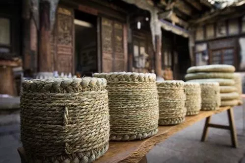 草墩 云南 • 大理州 草墩就是用稻草编成的墩子,巍山草墩独特之处在于其造型、色彩。巍山草墩形状多样、大小不一,色彩则是由缠在稻草上的布的颜色决定,因而也就色彩斑斓,且还能呈现各种图形,如:八卦、心形等。