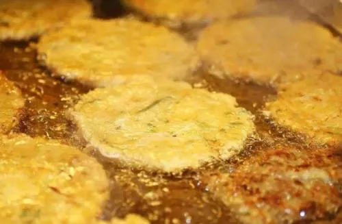 将面粉、黄豆粉、紫阳豆腐搅拌和匀油炸而成,吃时浇上淀粉醋蒜辣椒汁,口味酥脆麻辣,令人回味。