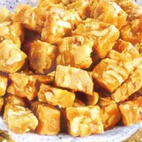 隔壁响 福建 • 漳州 • 平和 “隔壁响”又名花生酥糖。平和花生酥糖已有百年历史,依据祖传秘方、以传统工艺精致而成,营养丰富,香酥可口,油而不腻,风味独特,咬上一口隔壁都可能听见声音哦。信息来源:平和县文化广电体育局(旅游局)