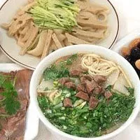 羊肉粉汤 甘肃 • 酒泉 • 敦煌 羊肉粉汤是敦煌传统小吃。选用敦煌本地饲养的膘肥体壮羯羊,宰好洗净切成大块,然后清水下锅。待快熟时,打净血沫,放人少许精盐,肉熟后捞出,剃骨,后将剃骨回锅,温火熬煮成汤。食用时,先将骨汤兑水,放人适量生姜。胡椒,花椒,桂皮,玉果,辣椒、精盐,萝卜片。大蒜等香料煮沸,再将熟肉切成薄片与切成块的凉粉盛人碗中,舀入沸汤,上面撒上香菜末、韭菜和葱、辣椒末等。观之红黄绿白,香味扑鼻,食之香辣爽口,肥而不腻。有滋补、发热、祛寒之效。( 敦煌)