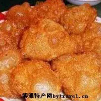 在油面中包入冰糖、白糖、玫瑰香精、核桃仁、芝麻等加工成小圆饼。然后在油锅中煎炸后即可食,吃起来香甜酥松。( 敦煌)