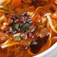 兰州臊子面 甘肃 • 兰州 • 城关 臊子面是兰州又一著名的传统面食。据说是由唐朝的“长寿面”演化而来,成为老人寿辰、小孩生日及其它节日的待客佳品,含“福寿延年”之意。臊子面做工考究:先用猪肉、黄花、木耳、鸡蛋、豆腐、蒜苗及各种调料做成臊子;再用碱水和面,反复揉搓,然后擀成厚薄均匀的面皮,用菜刀切细,在锅内煮熟。食用时,先捞面条,再舀臊子,汤多面少,则臊子鲜香,汤味酸辣,面条细长,筋韧爽口,成为营养丰富、老幼皆宜的美味佳肴。