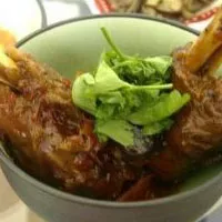 3、羊蹄入老汤锅炖烂(指蹄筋)后入盘,把羊蹄卤到熟烂,羊蹄本身没有什么肉,就是一层皮,要小心不要过烂,导致骨肉分离的悲惨下场。卤好后,捞出, 用胡椒、辣面等佐料拌匀即可,或者可以淋一些刚才的卤汤汁。