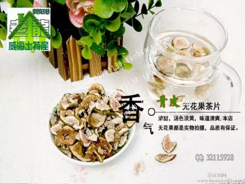 无花果茶片 四川 • 绵阳 无花果果实呈球根状,尾部有一小孔,除鲜食、药用外,还可加工制干、制果脯、果酱、果汁、果茶、果酒、饮料、罐头等。无花果干无任何化学添加剂,味道浓厚、甘甜。无花果汁、饮料具有独特的清香味,生津止渴,老幼皆宜。错过了时长三个月的采摘期也可以在当地购买加工后果干和果汁。