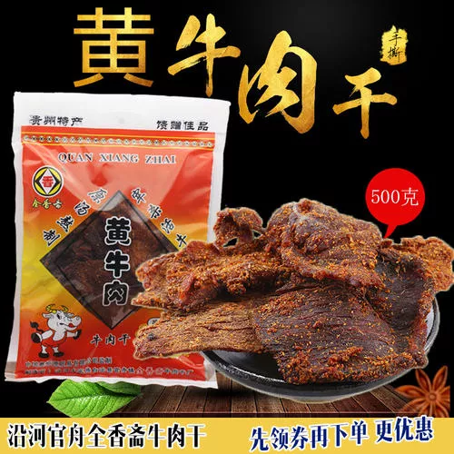 沿河县官舟牛肉干是以本地土黄牛加工生产而成,肉质细嫩,香甜可口,主要分为麻辣和五香味。
