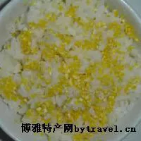 原料:酸奶五两,煮熟大米一碗,酥油一两五钱,白糖一两。制作方法:大碗内盛满米饭,加酸奶。把酥油用微火熔化,稍侯均匀地倒在酸奶上,洒上白糖。