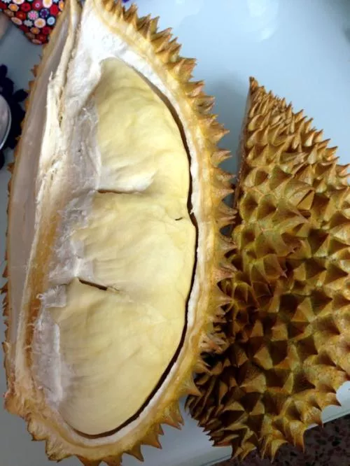 榴莲 海南 • 海口 • 琼山 木棉科热带落叶乔木,原产东南亚,果实被称为“万果之王”、“水果皇后”。 果实香味异常,吃的人感觉越吃越香,能吃上瘾;不吃的人感觉味同猫屎臭。 榴莲不可以采摘,否则不能继续成熟,果树也会受损伤。只有等其成熟后自己落下。 古时一群男女漂洋过海下南洋,遇风浪船翻,只有一对男女漂泊几天到达一个美丽的小岛;岛上居民采来一种果实给他们吃,很快恢复了体力,两人再也不愿意回家,在此结为夫妻,生儿育女。后来人们给这个水果起名叫"榴莲",意思是让人流连忘返。( 海口)