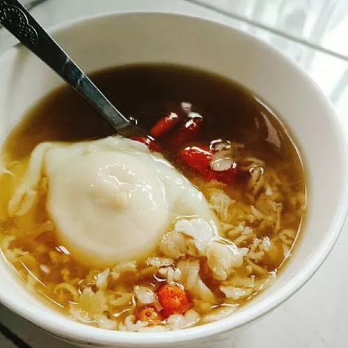 醪糟鸡蛋 甘肃 • 武威 • 凉州 醪糟鸡蛋 醪糟是最原始的酿酒方法。糯米蒸熟,加进米曲子,不几天会生出白毛,透出阵阵酒香。烧醪糟用红泥小火炉,鼓风机吹得火苗直窜时,搭上紫铜炒勺,舀一勺发酵好的米胚,加水,烧得开几个滚,再加白糖,甩进鸡蛋穗,眨眼间,只见满锅都是淡黄色的“桂花”。舀一匙,甘醇微熏。天寒时来一碗,暖透了人心肠。为凉州百味中的一绝。