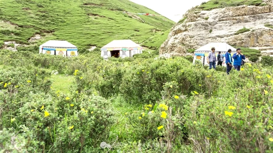 哈熊沟的绿色植物算比较多的,整个峡谷开满了白的黄的小花,像星星一样布满整个哈熊沟。
