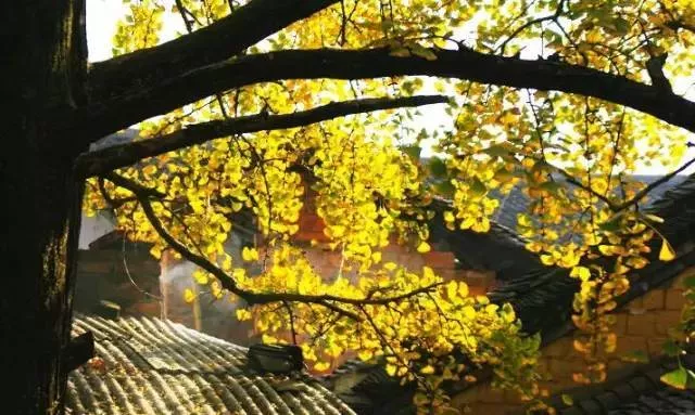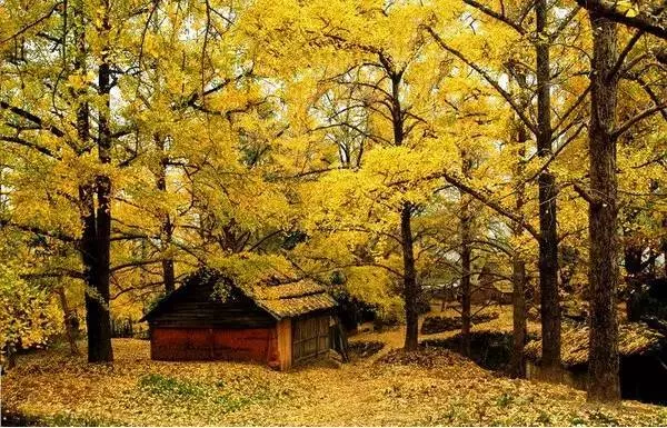 每到深秋季节,微风轻拂,落叶缤纷,树上的、树下的,一片片落叶就象一片片黄金,与林下拾叶子的老人或孩童,构成一幅幅别有韵味的秋意图。