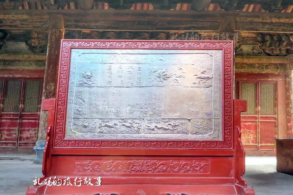 在献殿旁还矗立着高1.71米,宽1.32米的《关帝签簿》方形石碑,该石碑雕刻于明万历四十一年(公元1613年),内容是北宋文学家苏东坡撰写定稿的100首签诗。这100首诗记述了100个历史典故、神话故事和民间传说,分为大吉、上上、上吉、中吉、中平、下下和罚油等七种类别。