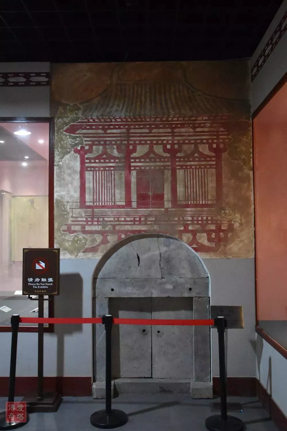 【昭陵博物馆仿制的墓门上方建筑壁画】