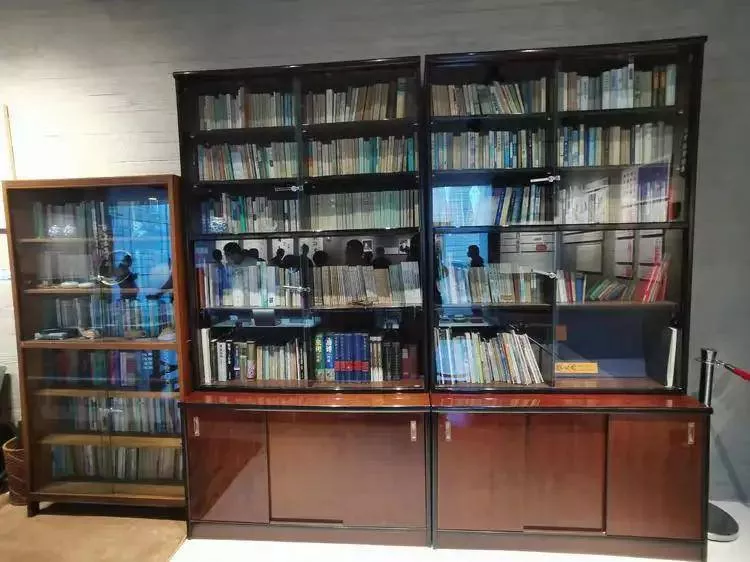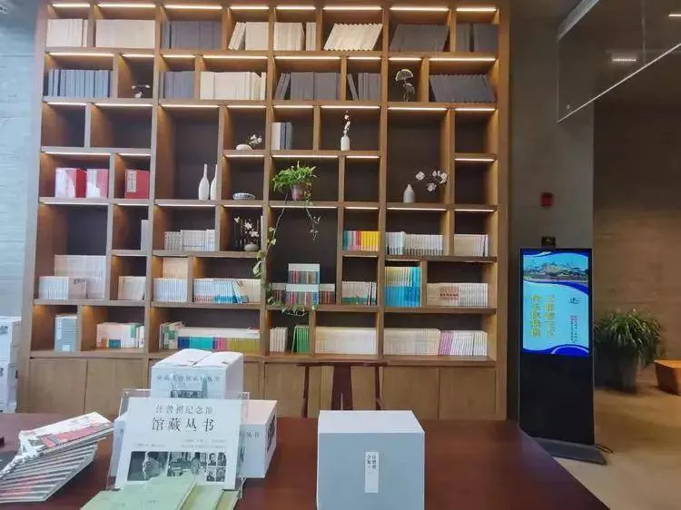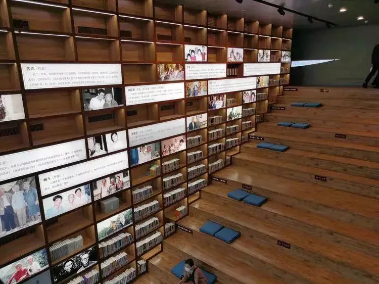 一二层之间有一处独特的区域——台阶式的阅读台地将藏书区和阅览区结合在一起,一整面墙的书架上面摆放着汪老著作,另一侧是片片的信笺——多年来各地读者寄给汪老的书信,阶梯面对的落地玻璃墙外是汪园与一座清代老宅,读者可以坐在台阶上,读书、看信、静思,感受汪老的精神世界。