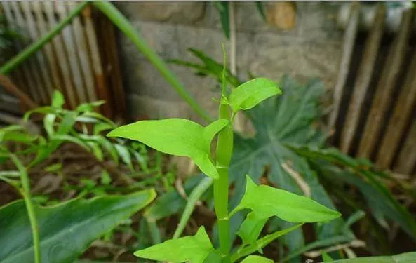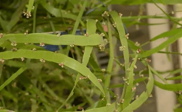 竹节蓼最特别的是它的茎。大家都知道,一般植物有五大基本器官,即根、茎、叶、花和果实。在正常条件下,这五大器官分得清清楚楚,并且各自履行着相应的功能。然而,有些植物长期生活在特殊的环境中,为了生存,部分器官的形态和功能就发生了变化,这便是植物学上所说的“器官变态”。竹节蓼的茎就是变态茎,这多节、绿色、形似叶片的是它的叶状枝,是茎扁化成叶状,但有明显的节和节间,叶片披针形,或退化成数枚小叶或全缺。竹节蓼的扁化茎与竹叶很像,都有平行脉。扁化茎上还有一节节的分节,在分节的地方,也会有一些小叶子,这些叶子在干旱的环境里很快也会脱落,只留下披针状叶。