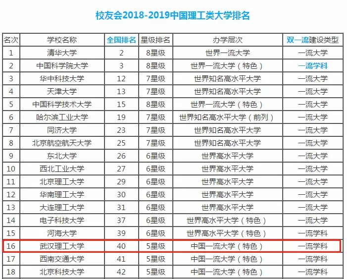 在校友网2018-2019年中国大学排行榜中,武汉理工大学位列40位,理工类排名第16位。