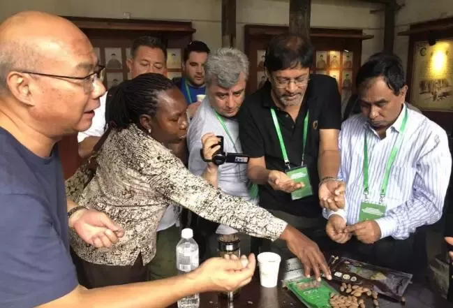 来宾参观了谷来镇吕岙村的香榧博物馆,听取香榧博物馆解说员对香榧博物馆的介绍,并现场走访了全球重要农业文化遗产——绍兴会稽山古香榧群所在地之一谷来镇袁郭岭浙江香榧森林公园,对当地青山绿水的优美环境和香榧产业生态化发展模式羡慕不已。