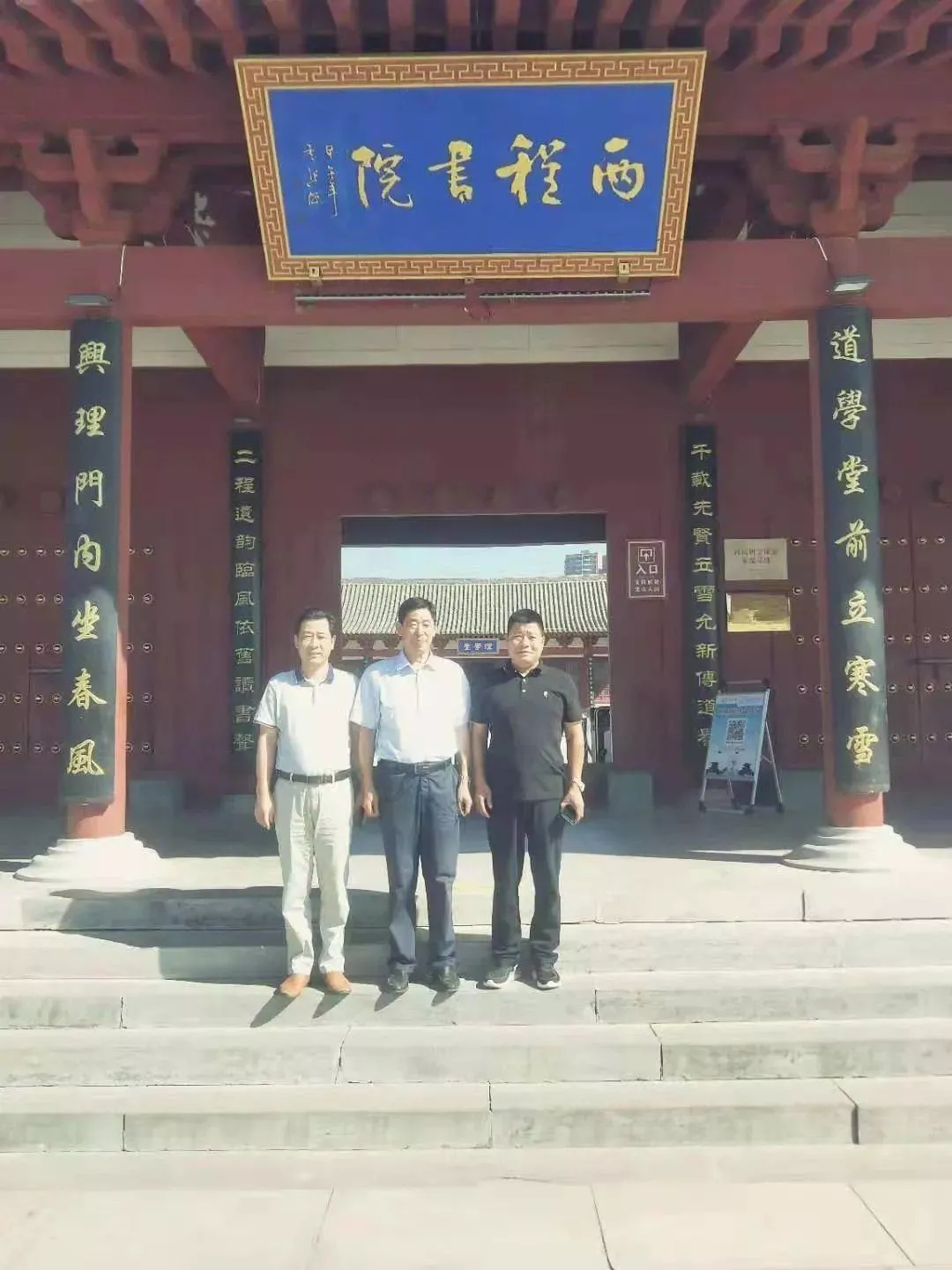 18日上午考察项目之后参观了国家4A级景区程林文化园,参拜二程殿.朱子殿,朱新华一行对伊川县古文化给于高度评价并合影留念。