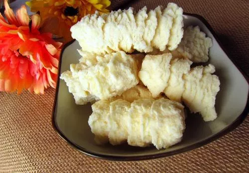 奶疙瘩 新疆 奶疙瘩是新疆哈萨克民族喜欢吃的一种食品,是新疆风味小吃之一,被称作“库入特”(干儿的意思),是奶(牛奶、羊奶)的结晶体。奶疙瘩有两种,一种是甜奶疙瘩,一种是酸奶疙瘩,可带油可不带油。做法大都是靠手工,不同的民族有不同的做法。牧民做奶疙瘩时,先将牛或羊奶发酵,把发酵后的酸奶倒入锅里熬,然后装入布袋里吊起来,使其水分滴尽,用手捏成小块,放到铺有芨芨草编制的席子上晾干即成。中文名:奶疙瘩是否含防腐剂:否适宜人群:青年人,老年人,儿童做法:制作手工