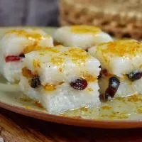 江米凉糕 河北 • 衡水 • 冀州 江米凉糕是在衡水流传近300年的风味小吃。江米凉糕是一道由江米,面粉、熟芝麻、金糕、豆沙等原料制成的糕点,适合夏天食用的老北京特色传统名点。清香软糯的糯米,裹着沙甜的豆馅,吃上一口棉软不粘牙,沙甜而不腻口。江米凉糕最先是乾隆时期皇宫内的御膳,后来,宫内御厨退休出宫,多在冀州市收徒设店,江米凉糕也因此传入民间。中文名:江米凉糕主料:江米,面粉、熟芝麻配料:金糕、豆沙,白糖特点:绵软糯黏,酸甜可口