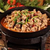 香辣牛蛙,是江西新余地区的一种特色美食。大家都知道牛蛙的营养价值非常丰富,味道鲜美,是一种高蛋白质、低脂肪、低胆固醇营养食品,备受人们的喜爱。当地的香辣牛蛙主要以牛蛙为原料精制而成,烹饪时先把牛蛙开膛去内脏洗净,放到案板上,先从腰部改刀切成小块。然后把切好的蛙倒入一个大一点的碗中,放入少许盐,胡椒粉,料酒腌制入味。之后准备好葱花,姜片,干辣椒,冰糖等配料待用。锅内倒入适量食用油,小火放入冰糖和辣椒煸香后转中火,之后下入葱姜,郫县红油豆瓣酱,炒出红油。最后转大火倒入牛蛙翻炒片刻,之后再下入葱头一起翻炒,倒入适量生抽和盐继续翻炒数下后出锅装盘。成菜后具有香辣爽口,肉质细腻等特点,一直是当地最受欢迎的一道菜肴。