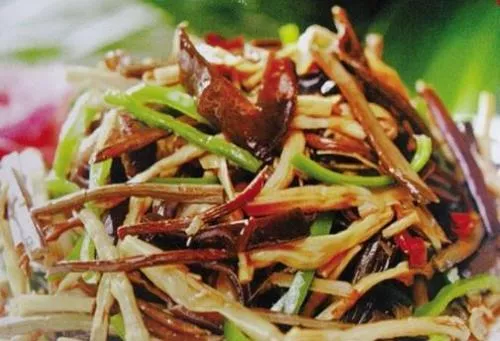 舞钢山野菜 舞钢山野菜是平顶山舞钢市的特色菜,此菜选用舞钢市独特的纯天然绿色菜品烧制而成。山野菜多生长在九头崖、天池山、五峰山的灌木丛之中,菜品有地龙菜、龙珠菜、金香菜、珍珠花、木莲菜、槐花、野腊菜、马齿菜、水芹菜、天精芽、合欢菜等几十种,这些山野菜可凉拌,也可热炒、做汤,可单独烹调,也可配肉、蛋炖炒。其味道鲜美,营养丰富,为食客最喜欢的菜品。