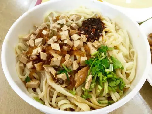 华阴大刀面 陕西 华阴大刀面是华阴地区传统美食之一,起源于宋朝,有着悠久的历史及丰富的文化内涵,被评为“首届陕西金牌旅游小吃”。制作大刀面要经过复杂的制作工序,和面、压面、擀面、切面、下面、调面一道工序都不能少,最后制作出来的大刀面薄如纸、细如线、筋而不断,再配上传统的臊子,吃起来酸香爽口、回味无穷。华阴大刀面最为有名的品种有:传统臊子面、麻酱凉面、干拌面、炸酱面、蒜泥凉面、油泼辣子拌面等。华阴比较有名的大刀面当属于“孟记传统大刀面”,几代人经营了数十年,每到饭点,时常是顾客蜂聚,络绎不绝。