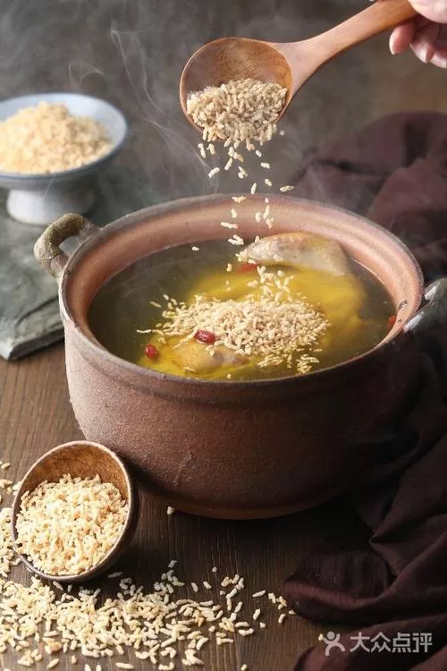 老母鸡汤泡炒米 安徽 鸡汤泡炒米是安庆地区的著名特色小吃,制作时选用上等糯米,先用开水浸泡,待其发软能掐动,捞起来装入竹箩或簸箕,再用大量冷水冲,等水分沥干,便可下油锅炒作食用。安庆炒米非常出名,上过舌尖上的安庆这个节目,一直以来,深受安庆人民的喜爱。安庆炒米吃法有很多种,最常见的吃法是用鸡汤来泡,即老母鸡汤泡炒米,闻名一时的老鸡汤泡炒米那是极具安庆特色的,熬一锅鸡汤,将炒米倒进去泡着,稍微泡一会儿就能吃,好不夸张的说,那味道真的香掉牙了。