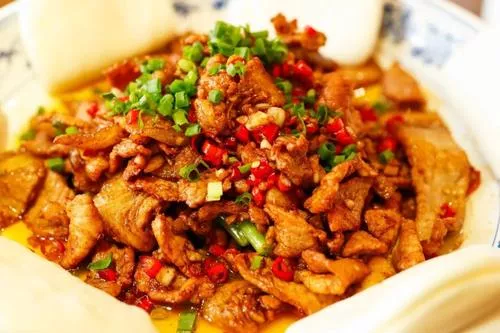 营口过油野猪肉 辽宁 过油肉起源于明代,是中国一道传统菜肴,原是山西传统名菜,后传遍全国,全国各地都有,从选料到制作上都与众不同,而营口盖州过油肉以人工饲养的野猪肉为材料,精选瘦肉上浆、拉油,再配以天然黑木耳、蘑菇和冬笋烹炒,也可配以鲜蘑、土豆片等食材烹制,成为营口一道经典的特色名菜。制成品的营口过油肉颜色金黄色艳丽,味儿咸香适度,外软里嫩,汁芡透明,不薄不够,美味诱人。盖州过油肉萃取了中华民族传统手工艺,又吸收了地方文化烹制技巧,备受营口群众和外地人游客热烈欢迎。