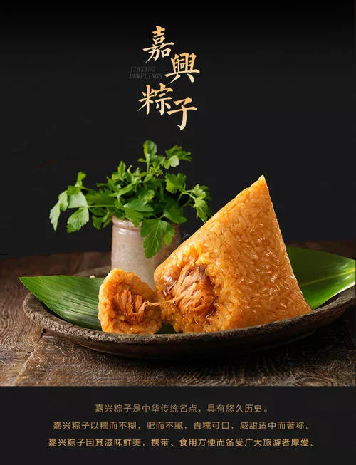 嘉兴粽子 浙江 • 嘉兴 嘉兴粽子是浙江嘉兴特色传统名点,以糯而不糊,肥而不腻,香糯可口,咸甜适中而著称,尤以鲜肉粽较为出名,被誉为“粽子之王”。嘉兴粽子的历史更是源远流长,在央视纪录片《舌尖上的中国》第二集中,更是出现了嘉兴粽子的身影,嘉兴粽子的飘香美味被展现得淋漓尽致。嘉兴粽子因为味道鲜美、携带和食用方便,备受大多数人喜爱,有“东方快餐”的美誉。而五芳斋粽子制作技艺更是被列入第三批国家级非物质文化遗产名录。嘉兴粽子是嘉兴一张响亮的美食名片,还入选由中国烹饪协会主办“中国地域十大名小吃”浙江榜名单,2018年被评为“浙江十大农家中文名:嘉兴粽子主要原料:猪后腿肉,糯米主要营养成分:蛋白质、脂肪、糖类、,钙、磷、铁、维生素B1、维生索B2、烟酸及淀粉主要食用功效:补中益气,健脾养胃,止虚汗