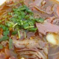 淮南牛肉汤 安徽 • 淮南 • 瑶海 淮南牛肉汤是淮南当地著名小吃,属于安徽菜沿淮片的代表之一,是苏北豫鲁皖一带家喻户晓的名小吃。淮南牛肉汤具有鲜醇、清爽、浓香的特色;有咸汤、甜汤之分。咸的牛肉汤肉肥汤鲜,特别是加上葱段后,滋味更鲜。不黑汤,喝多不上火,嗓不干,再配以粉丝和干丝;甜牛肉汤是指没加盐的牛肉汤,或者加少量盐的牛肉汤,其味清爽,滋味醇厚。淮南牛肉汤入选第二批“安徽金牌旅游小吃”,还入选由中国烹饪协会主办“中国地域十大名小吃”安徽榜名单。中文名:淮南牛肉汤外文名:Huainan Beef soup分类:安徽菜,沿淮菜口味:汤味醇厚,鲜香爽辣主要食材:黄牛肉,粉丝,豆饼,千张,牛杂流行地区:安徽淮南以及全国各地
