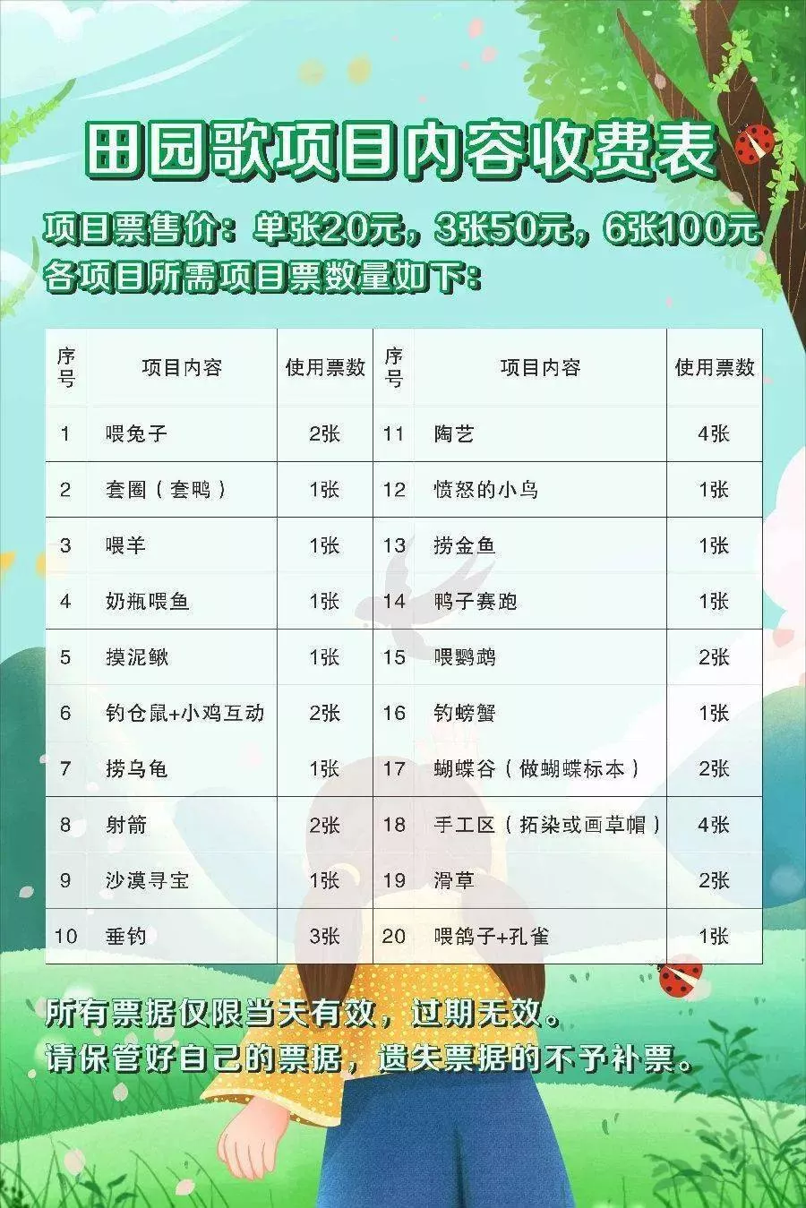 2. 景区内6张项目小票(按所选的套餐为准,农场内亲子项目可以任选游玩,详情看下表)