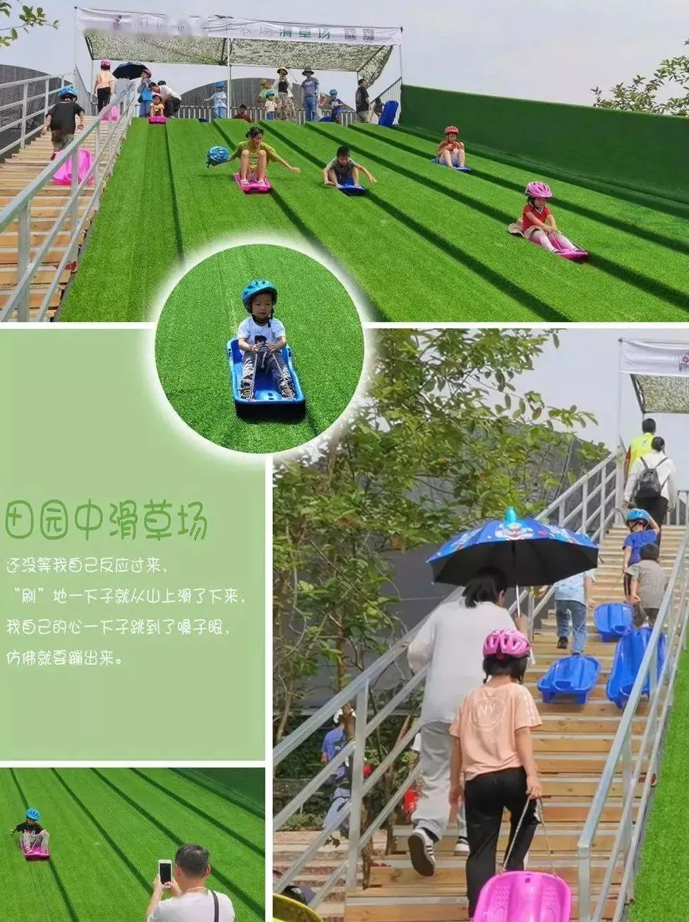 1、森林滑草绿茵草场飞扬,坐在滑行版上,在林间欢快滑行;感受风的速度,让身心畅快无比,控制好角度,锻炼平衡力!