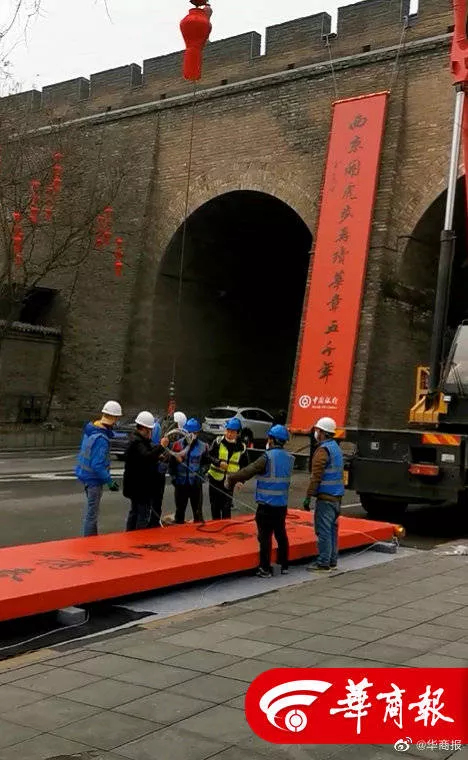 西安南门悬挂巨幅春联迎接“小年”,城墙景区25日起正式恢复开放 小年