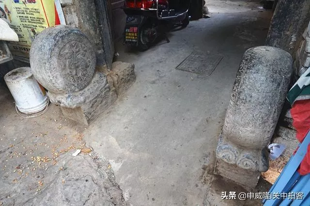 跟周围的建筑相比,老母庙显得很破烂,木质的大门,即低矮,又狭窄。在门口两侧,摆放了一对圆形的石墩,表面雕刻着精美的瑞兽和祥云图案。