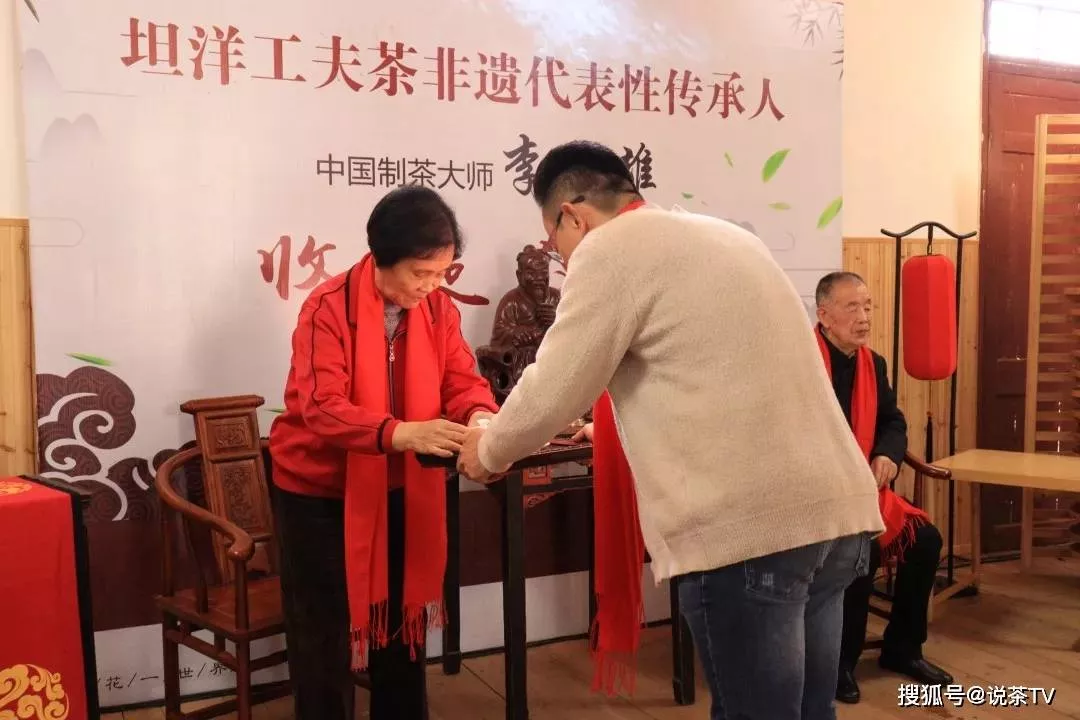 随后,在场的师徒共拜茶圣。入室弟子代表夏陈玉表达了对传承延续好坦洋工夫制茶技艺的决心。