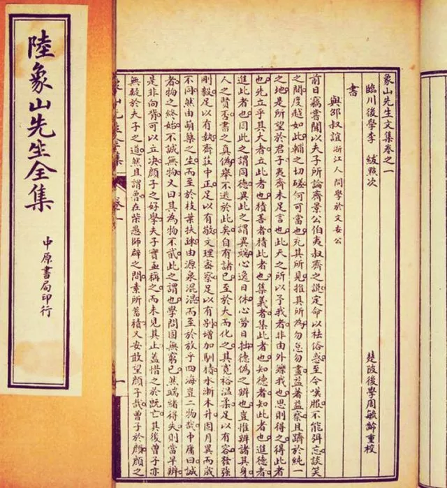 陆九渊为南宋孝宗乾道八年(1172年)进士,历任靖安主簿、崇安主簿、国子监正等职。淳熙十三年(1186年),陆九渊提出以“任贤、使能、赏功、罚罪”为医国“四君子汤”,得到朝廷赞许。绍熙二年(1191年),知荆门军,为政清廉,事事躬行,政绩卓著。
