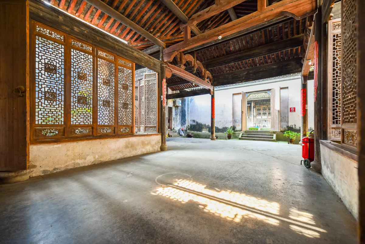 航拍视野下,斯宅犹如10个四合院连接而成;事实上,走遍千柱屋的每一个角落,可以“晴不见日,雨不湿鞋”,后人将千柱屋视作清代江南典型的聚族而居的大型宗族建筑。第一次进入,很容易迷路,因为内部院落几近相同,且门廊楼阁相通。