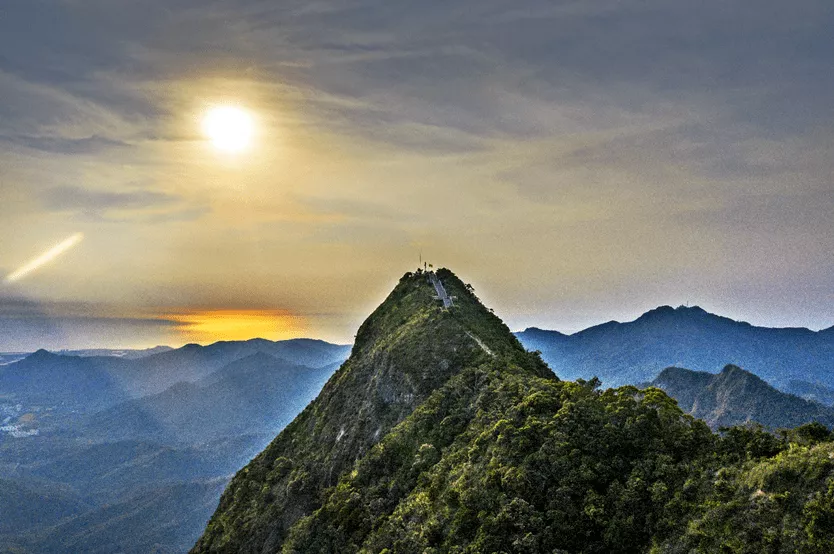 尖峰岭主峰:海拔1412米,因其山峰峰尖陡险绝壁而得名,素有“南海仙山”之称。登上主峰可领略日出日落美景、大海云海林海雾海四海奇观等。