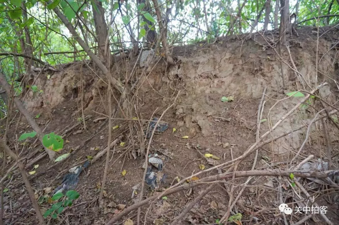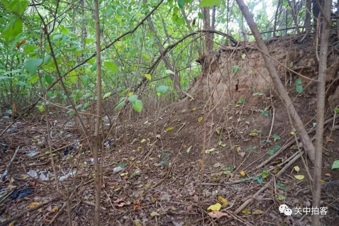 这段夯土呈东西向,上面长满树木杂草,长约100米,宽约15米,高约3米。我在这段夯土旁边走了几圈,反复观看了它的形状和结构,感觉不像是“城门”的遗址呀?应该是唐代太极宫的一段北墙遗址。