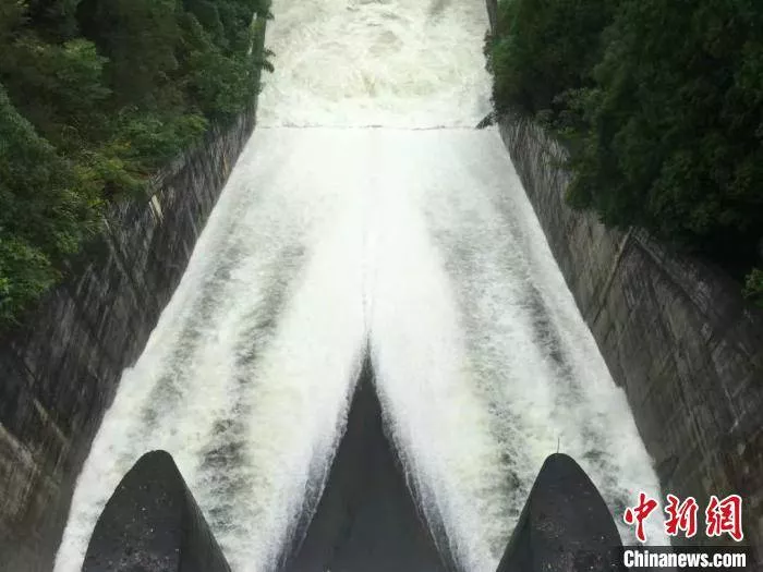 绍兴地区一水库泄洪。绍兴提供