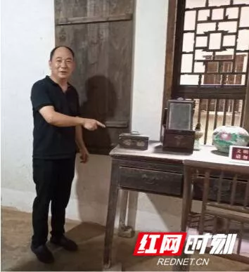 向弟良指着书桌上这个雕花木盒和镜子说:“这是杨开慧烈士英勇就义前用过的化妆盒和化妆镜。”