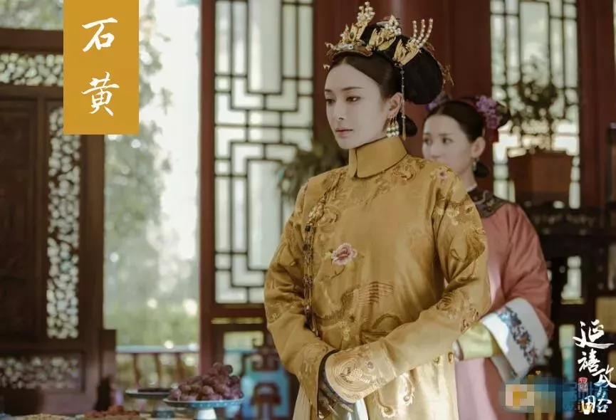 黄色五行属中,象征中正帝统,十分尊贵。唐代开始就只有皇族可以使用,而且黄色越纯,权利越大。延禧攻略众佳丽中,只有皇后与贵妃才能使用金黄色,皇后的宫装接近中国传统的石黄,别名雌黄,和金色接近。