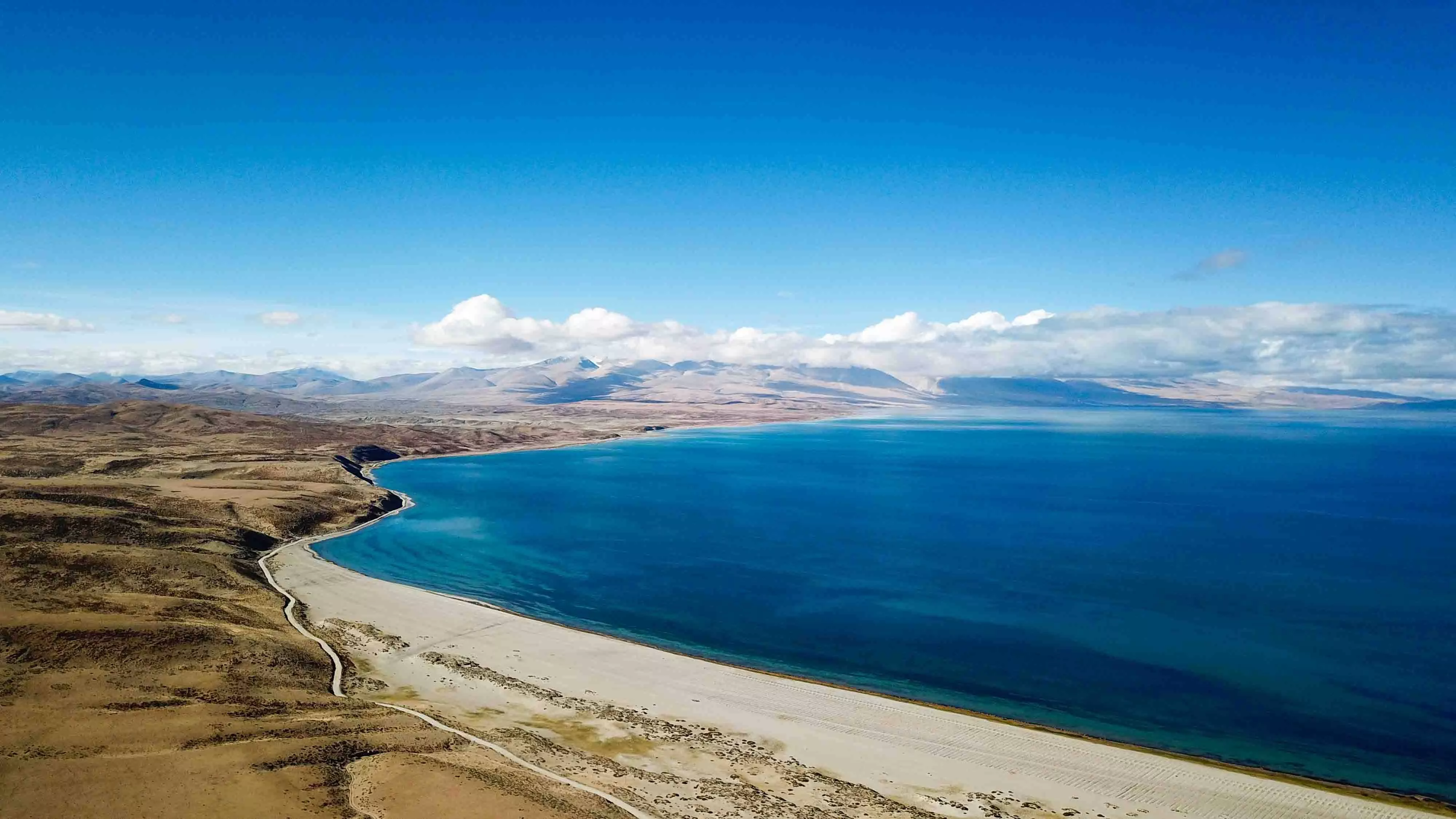 在西藏游玩的日子里,不断在感叹大自然的鬼斧神工,而玛旁雍措更是令人陷入疑惑,真的不是自己误闯了仙境吗?雪山仿佛将天地连接在了一起,白色的云朵密集在一起,好似雪花在蓝天上齐聚成了一团。